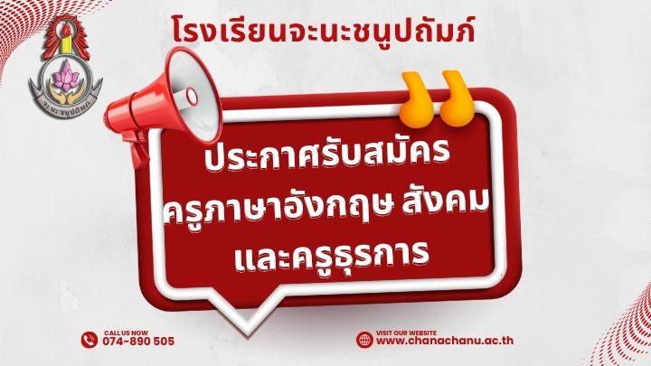 ประกาศโรงเรียนจะนะชนูปถัมภ์ เรื่อง รับสมัครสอบคัดเลือกบุคคลเพื่อจ้างเป็นลูกจ้างชั่วคราวตำแหน่งครูผู้สอน วิชาเอกภาษาอังกฤษ วิชาเอกสังคมศึกษา และตำแหน่งเจ้าหน้าที่ธุรการโรงเรียน
