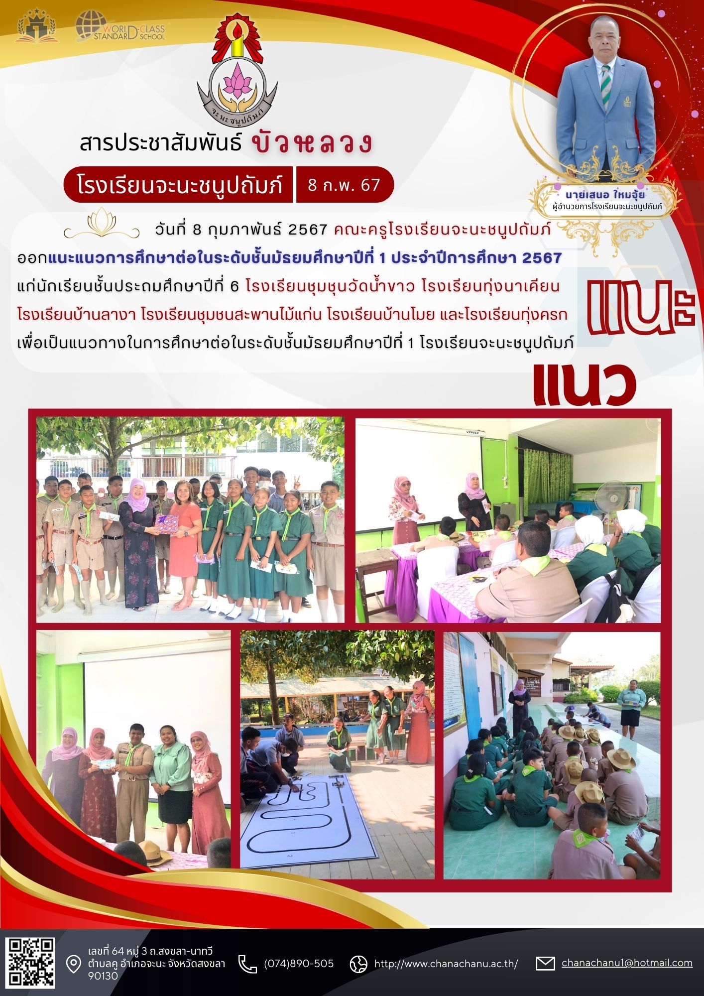เพื่อเป็นแนวทางในการศึกษาต่อในระดับชั้นมัธยมศึกษาปีที่ 1 โรงเรียนจะนะชนูปถัมภ์